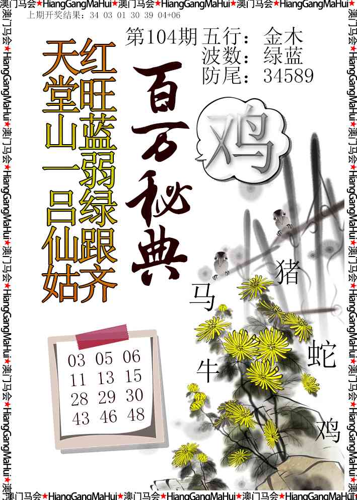 103期⑤肖【牛龙鸡羊蛇】开 06 准