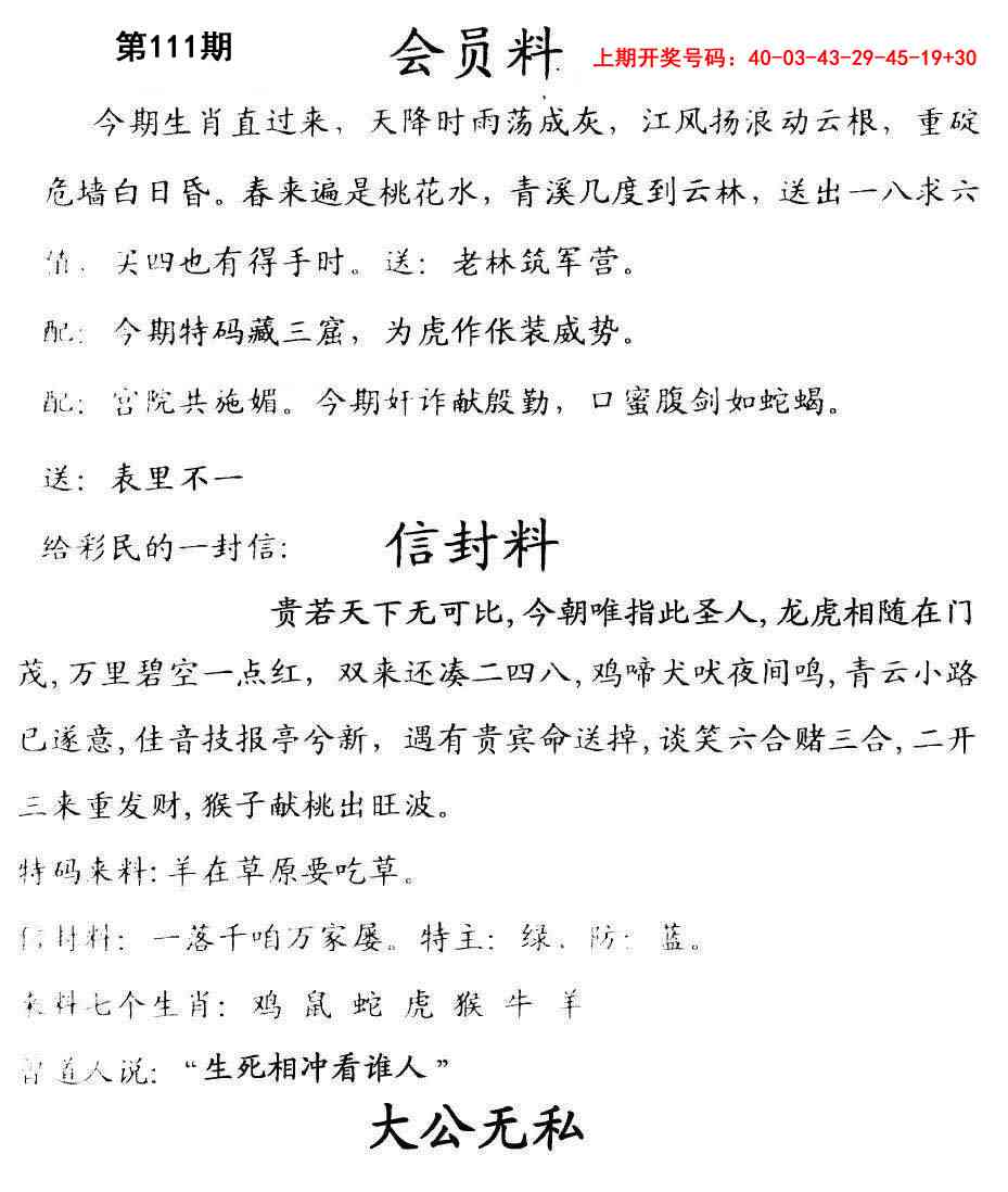 096期♞平特一尾♞【3333】开 43 准