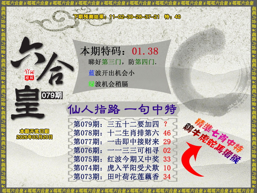 079期主攻特码:【13 25 11 47 34 46 17 41 06 30】开 ?? 准