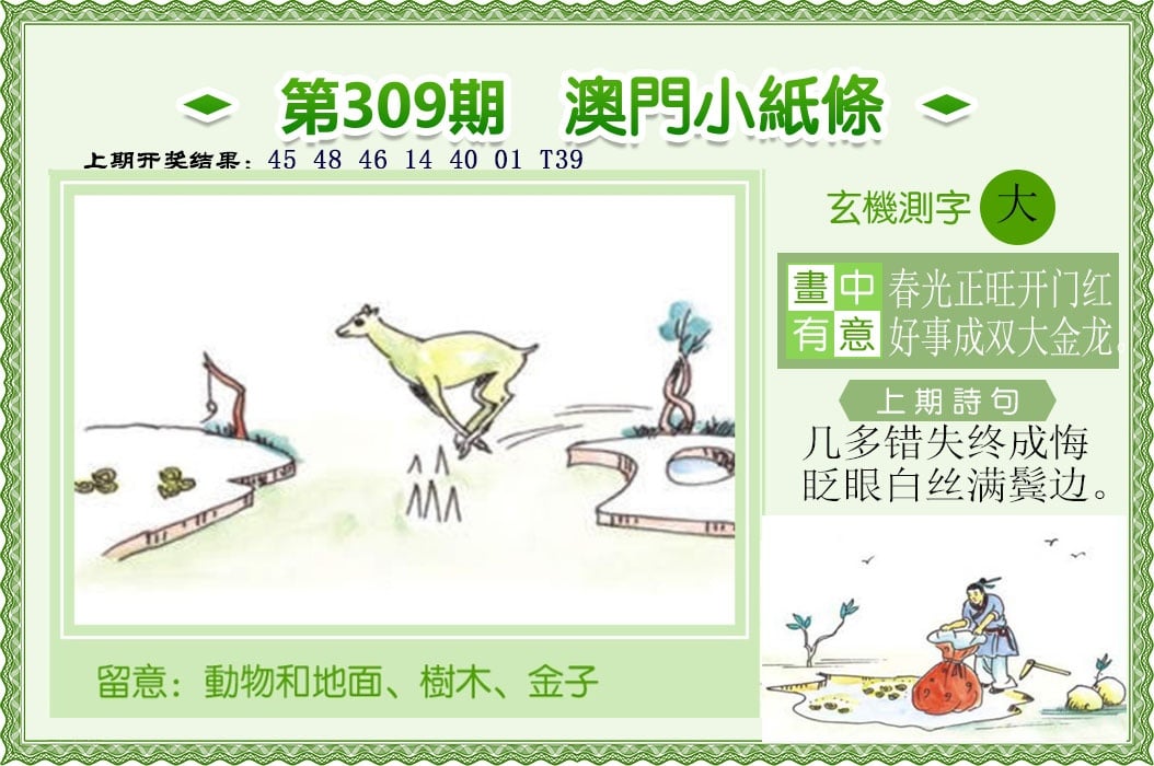 309期㊂特码三行㊂【金木火】开 ?? 准