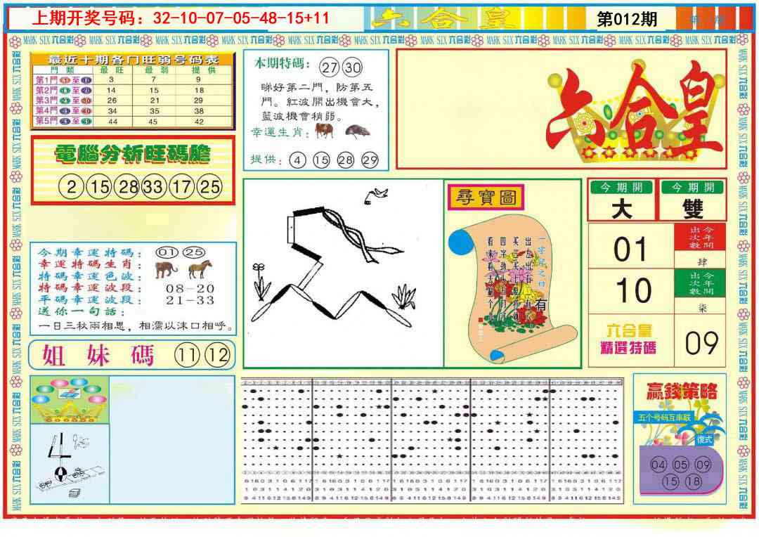 003期: 单双两肖 【双数+羊鸡】 开09鸡准