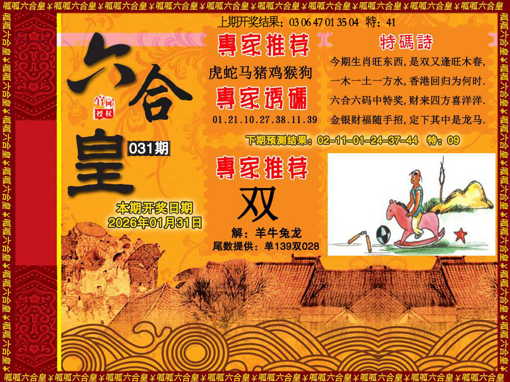 031期本期特围:【马蛇虎猪】开 ?? 准