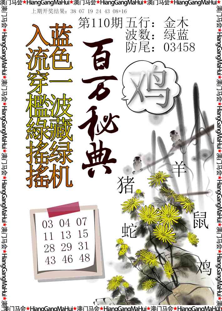 110期主攻特肖:【鸡猴羊蛇马猪】开 ?? 准