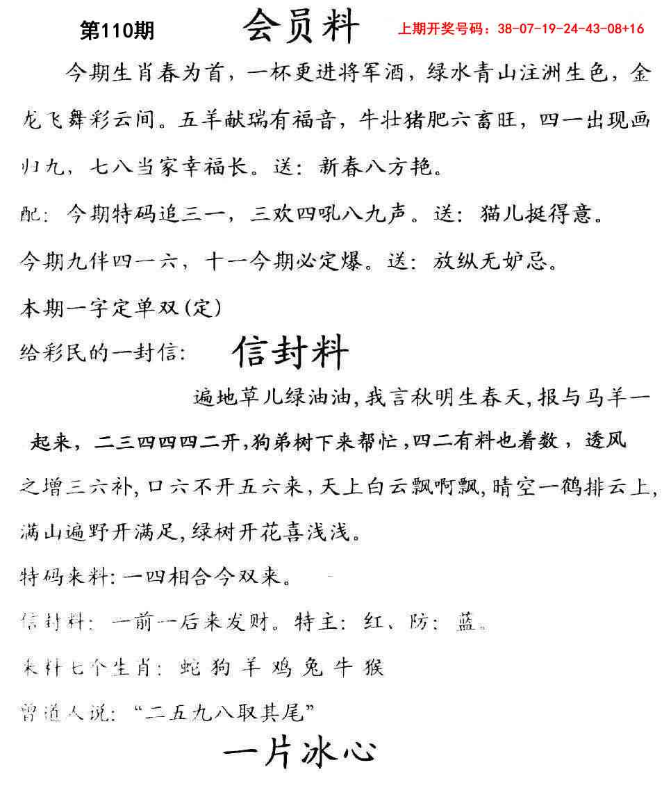 097期♞平特一尾♞【8888】开 28,08 准