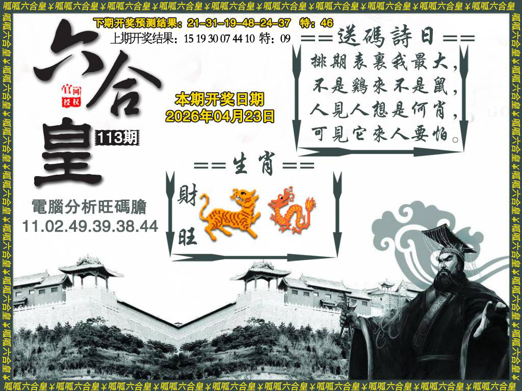 106期: 单双两肖 【双数+虎龙】 开22鸡准