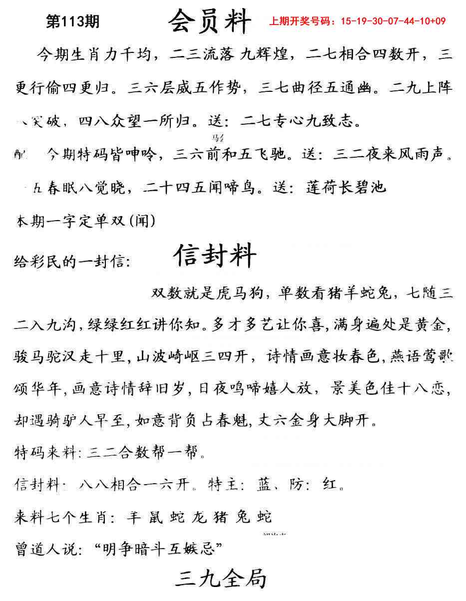 101期⑨【龙鼠虎蛇狗牛鸡兔猪】⑨开 39龙 准